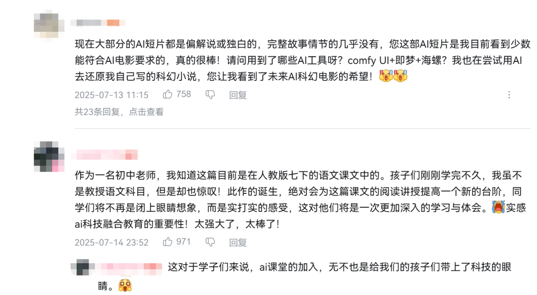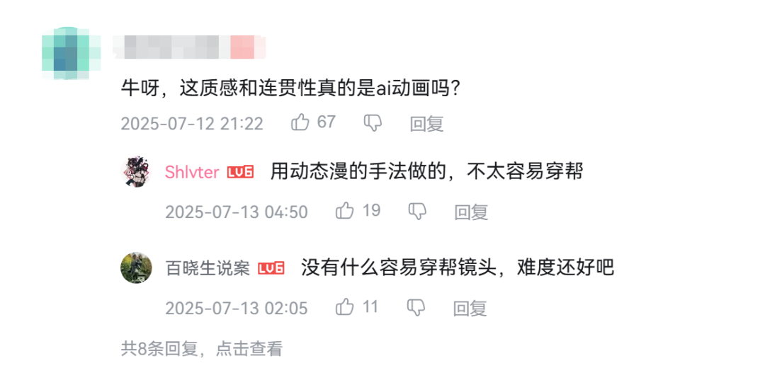 也许在以前,一部精彩的剧本足以弥补尚不完善的AI制作。但现在,无数的AI动画流入社交媒体妄图吸引眼球,这时候仅仅以“讲好故事”的情怀作为评判标准未免有些乏力,技术不应该被回避,其与故事早已经成为了共同体。