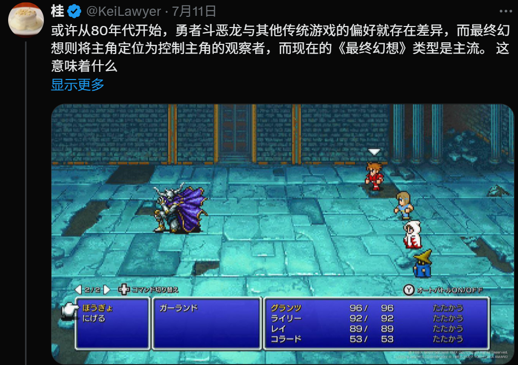 导火索是一条推文,游戏设计师岩崎启真(名字你可能不熟,但人家在行业里是老前辈了)提到了一个老掉牙但依然没人能说清的问题:RPG主角,到底是玩家的分身,还是一个独立角色?