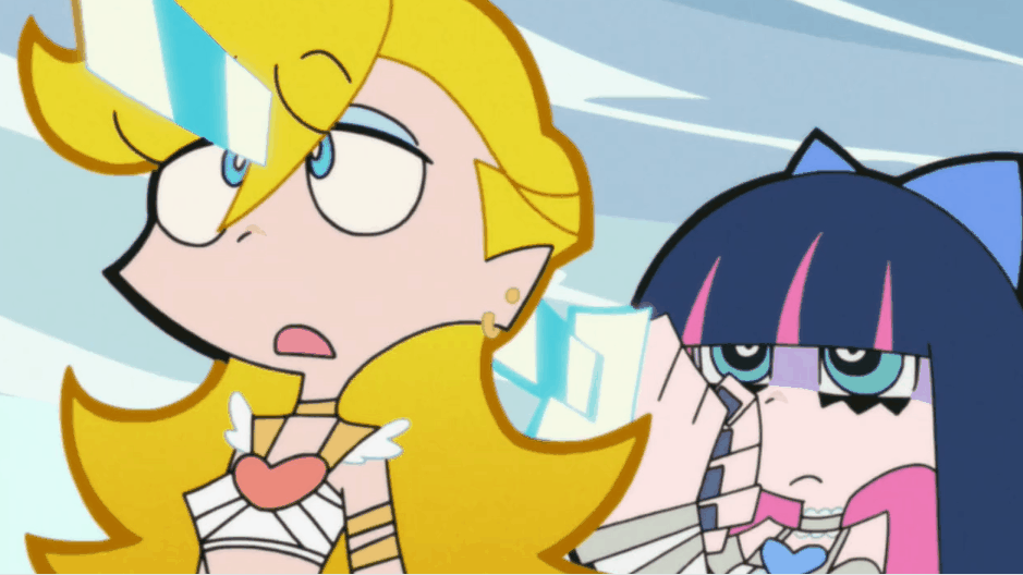 在第一季的末尾,重归处女之身的Panty也曾动摇过。当奶奶让她去做应该做的事情时,向来骄傲的她第一次选择了逃避,反而略显尴尬地回答出一句“我想做的又不是什么正经事”。