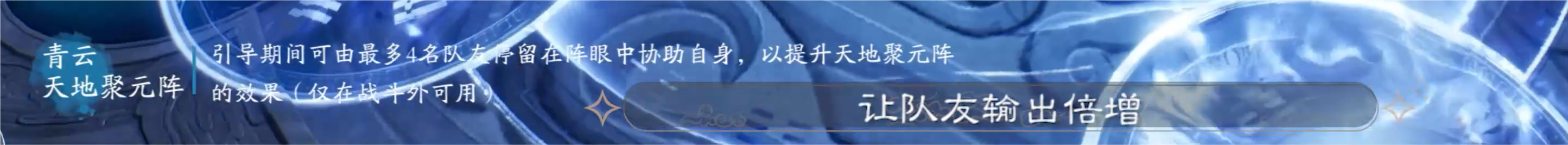 3测青云会增加一个辅助技能:天地聚元阵 开怪之前使用 让团队输出倍增 能给队友加dps的门派 一定是香饽饽 你的队友你的亲友都会优先要你 :青云giegie 开个聚元阵 你就是团宠!