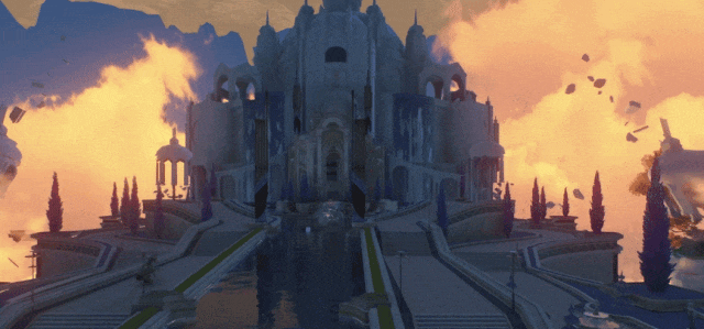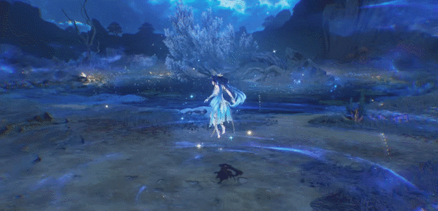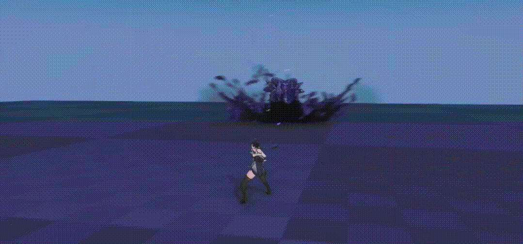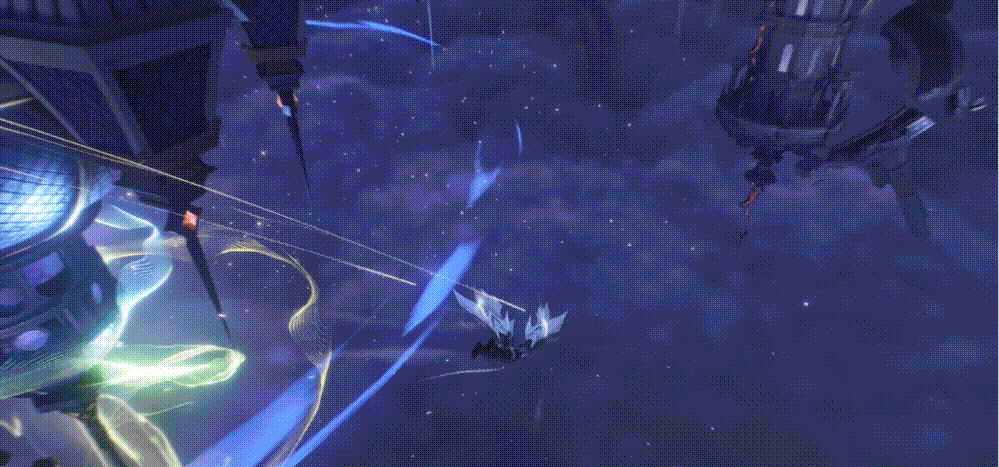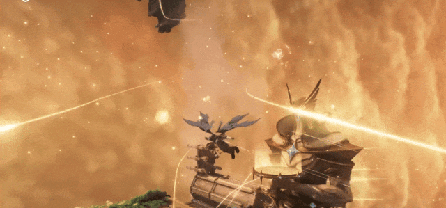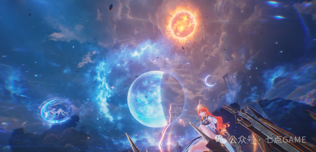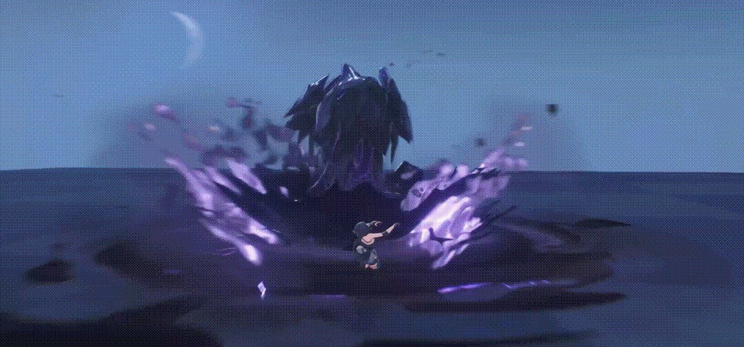 不过,我们还是觉得有进步空间,因为我们想要叠加效果更丰富,却势必会削弱日月单独存在的效果表现,这样就有点本末倒置。于是我们决定再设计一个额外的天空效果,去补充角色技能的冲击感,最后就有了大家看到的两款天气奇观效果。