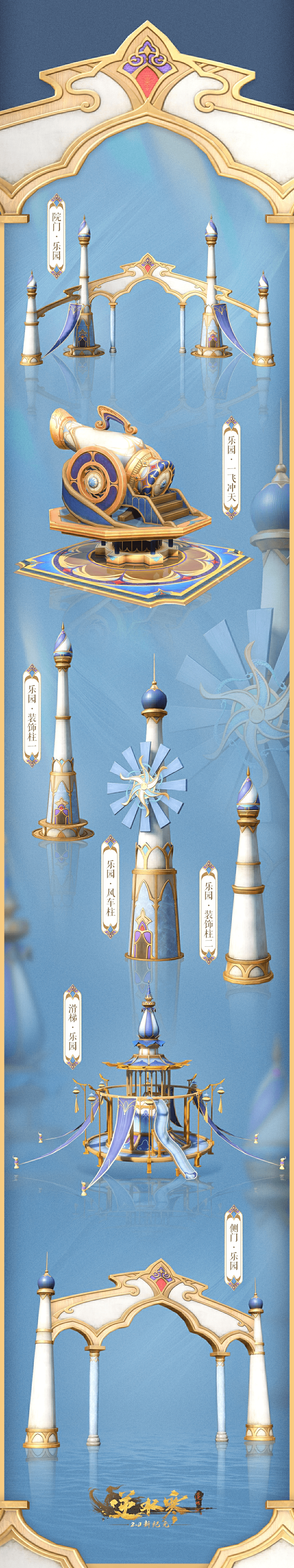 a)资材组件【院门·乐园】、【侧门·乐园】、【乐园·装饰柱一】、【乐园·装饰柱二】、【乐园·风车柱】;