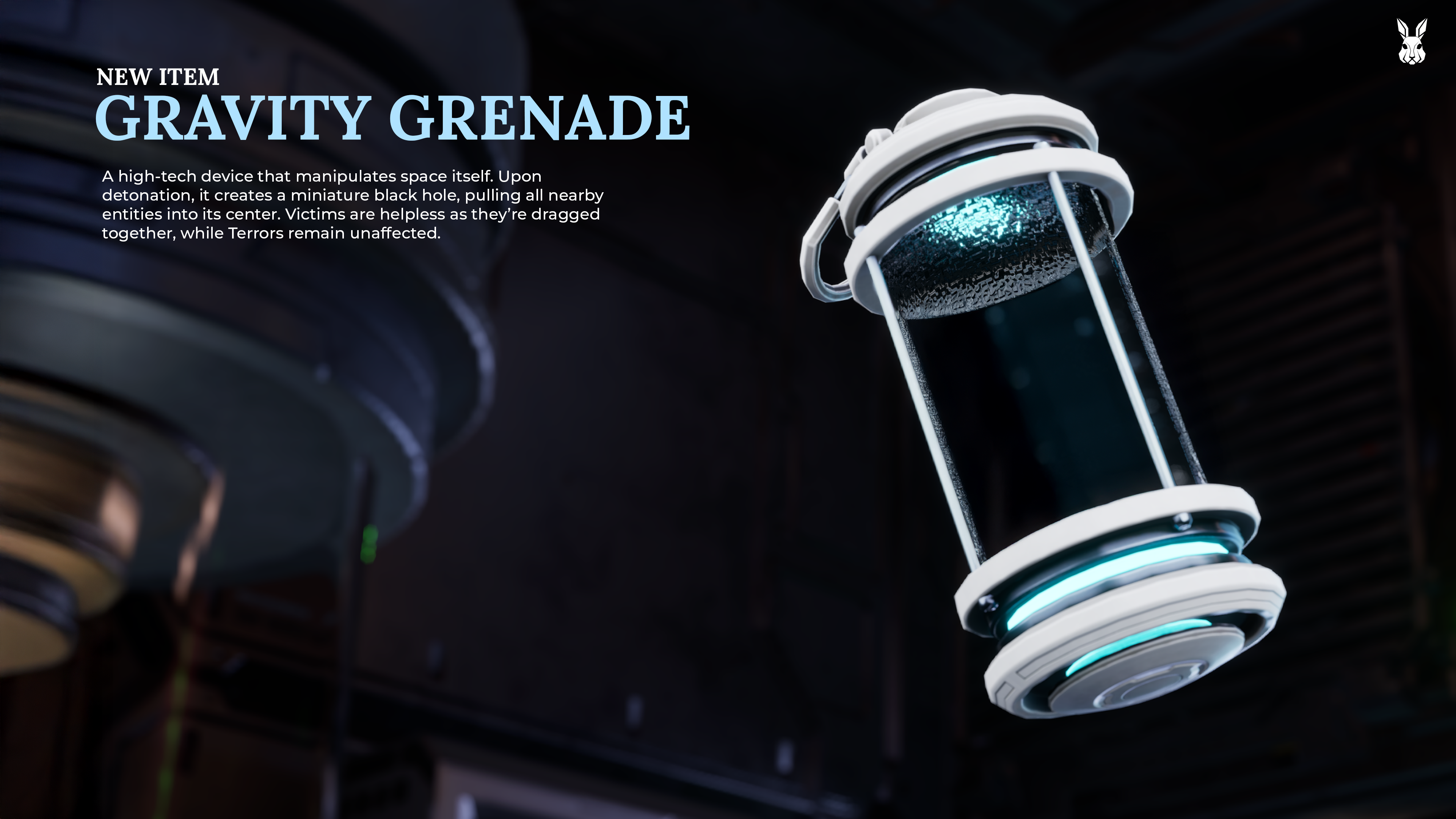 一种操纵空间本身的高科技设备。引爆时,它会创建一个微型黑洞,将所有附近实体拉向其中心。受害者被拖到一起时无助,而恐怖生物不受影响。