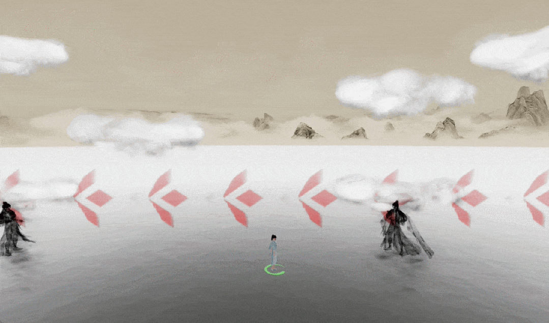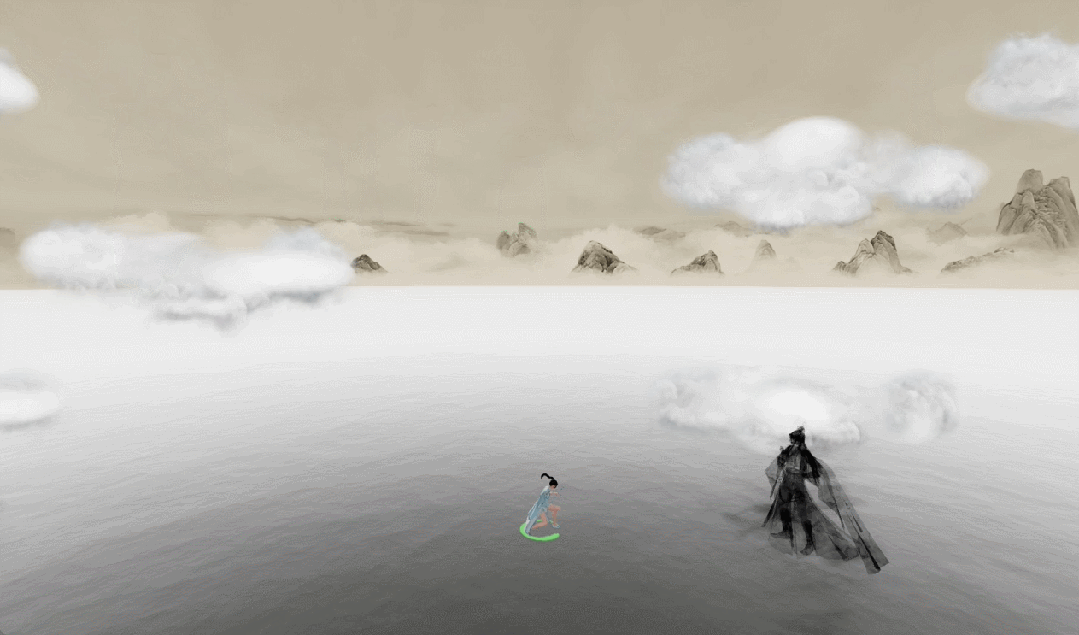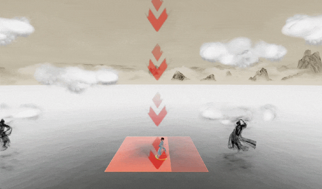 将所有少侠拉入山水画地图中,山水画阶段改为横版锁镜头战斗方式。