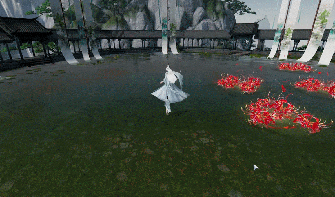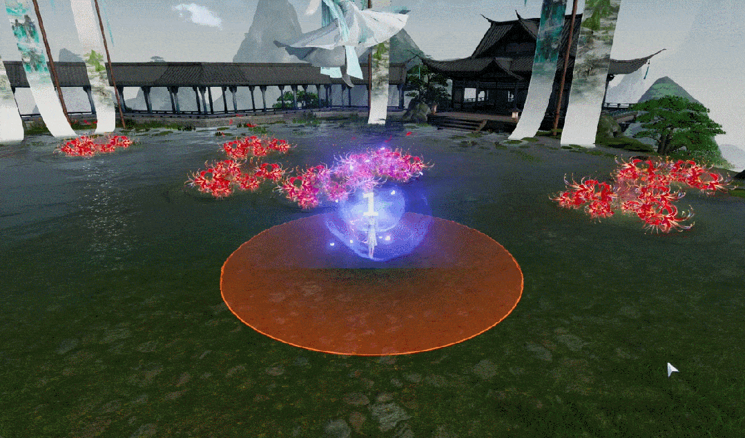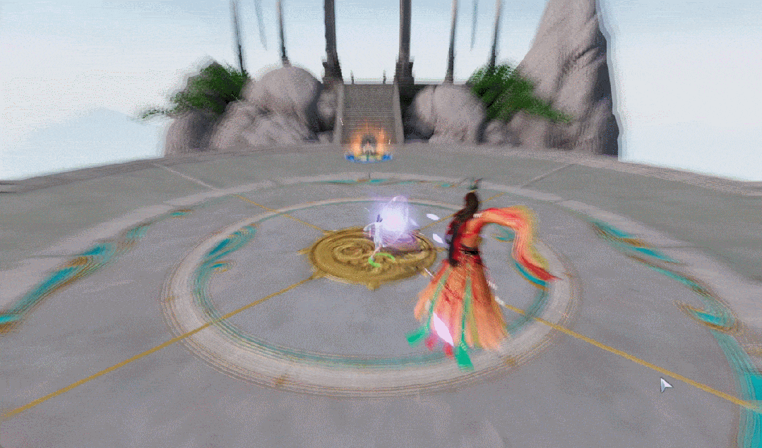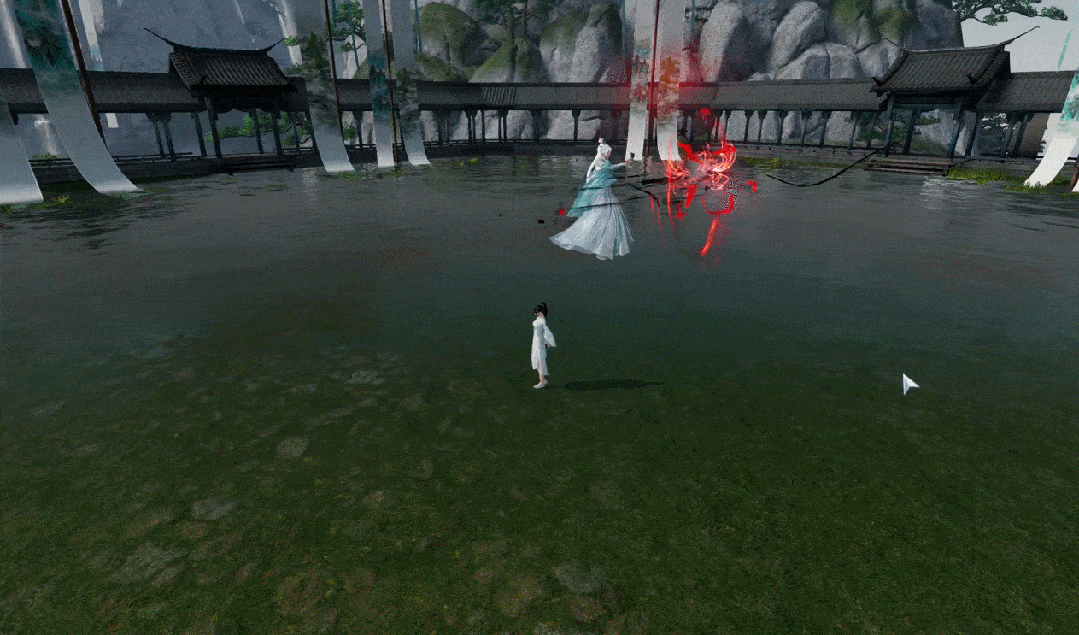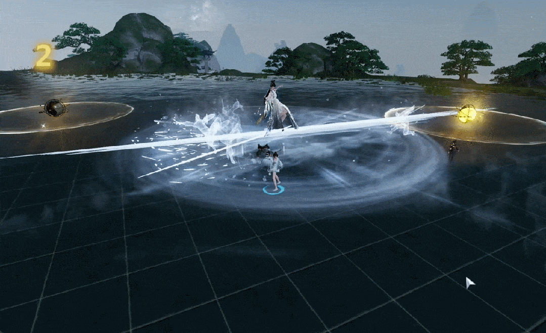 裴瑜锁定一名目标,经过短暂蓄力后冲刺至其身后,而后挥出拂尘对前方造成连续3次的扇环范围打击,造成中量伤害。