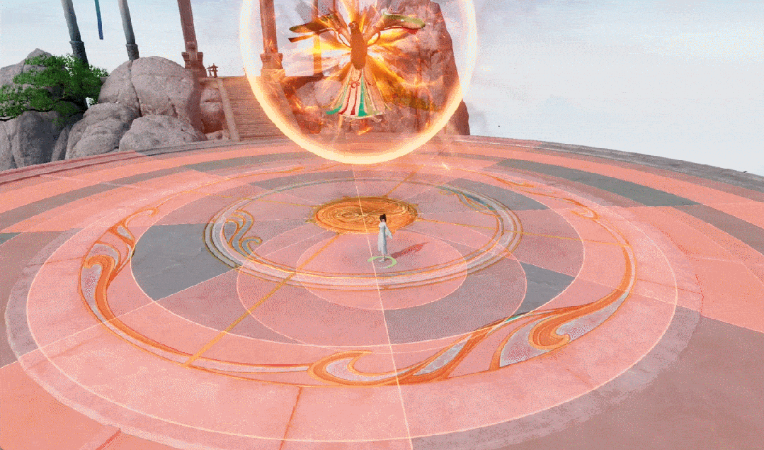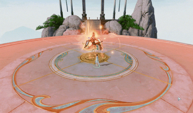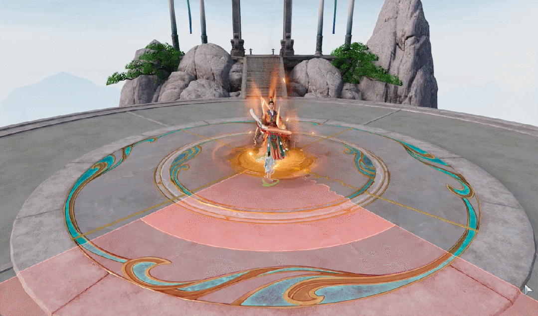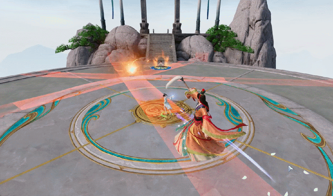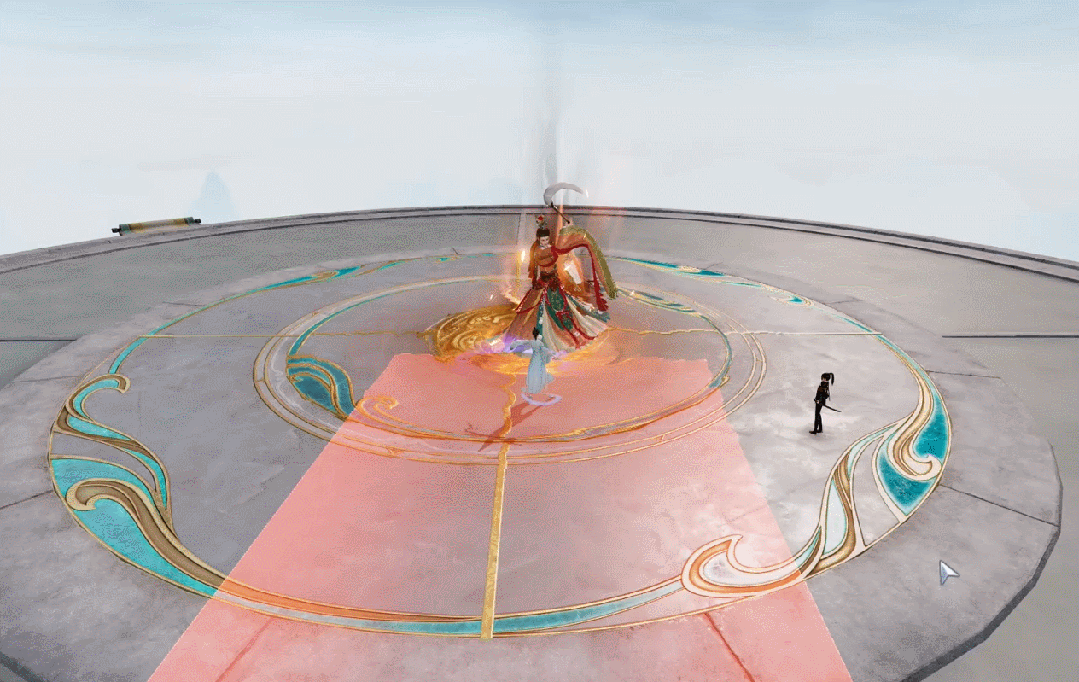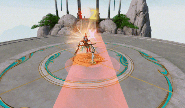 裴瑜进入蓄力状态,蓄力过程中会不断对战场内少侠进行圆形范围、扇形范围、矩形范围等干扰打击,蓄力结束后对战场中全部目标进行一次打击,造成大量伤害。