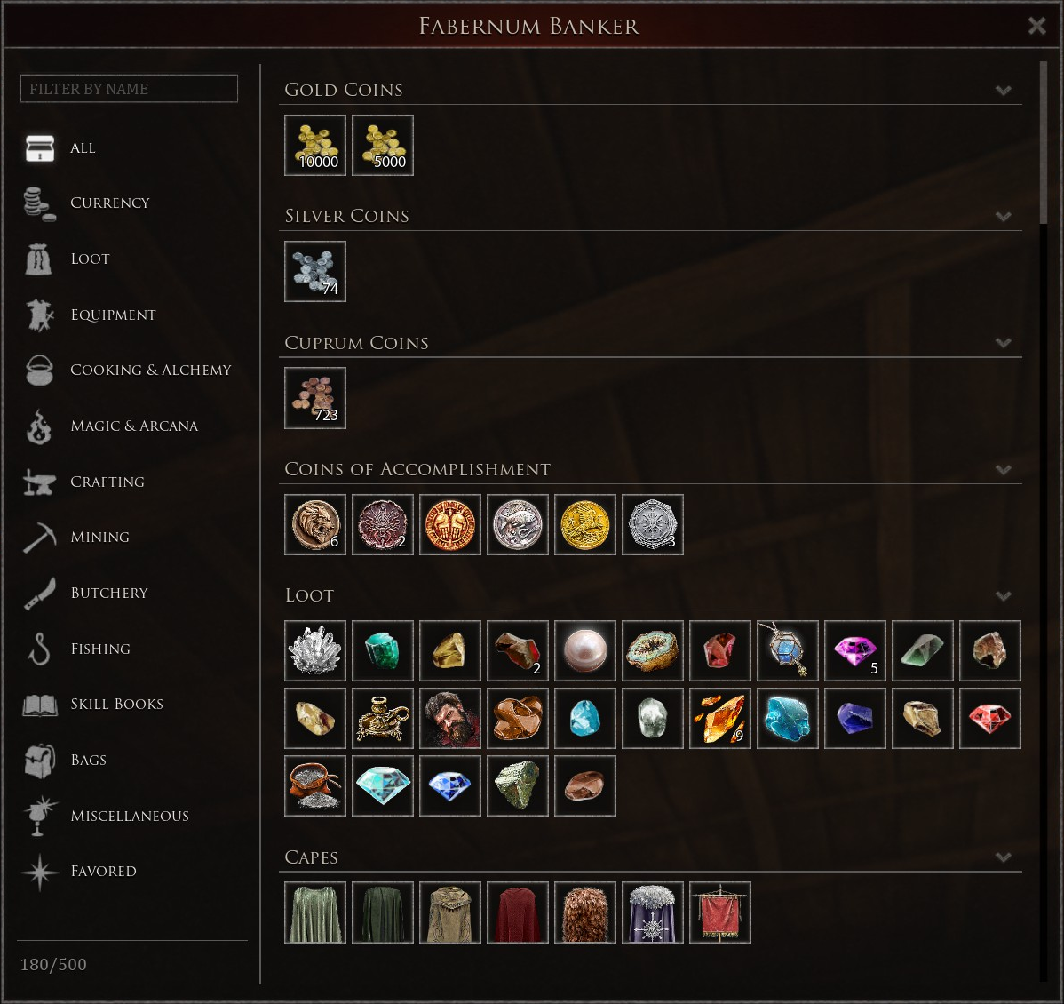 以下是我们测试服务器上截取的新银行界面当前外观以及一些自动分类的物品类别预览: