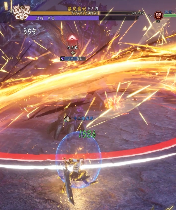 5. BOSS技能,疾恶冲拳,点名一位玩家释放冲锋,需要躲在石柱后面让BOSS撞击石柱,如果撞到玩家,直接秒杀。