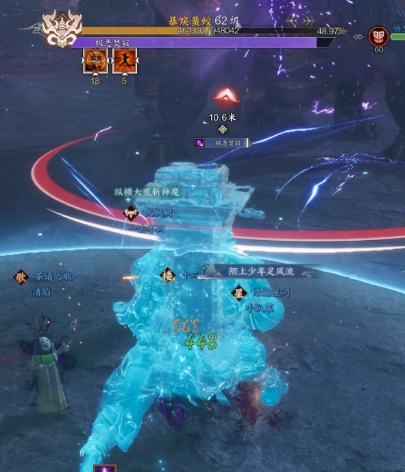 5.BOSS技能极恶焚寂,全屏高伤害AOE,此时场上会生成蓝色光罩,第一时间站进去即可。此时团血压力很大,需要治疗开技能。