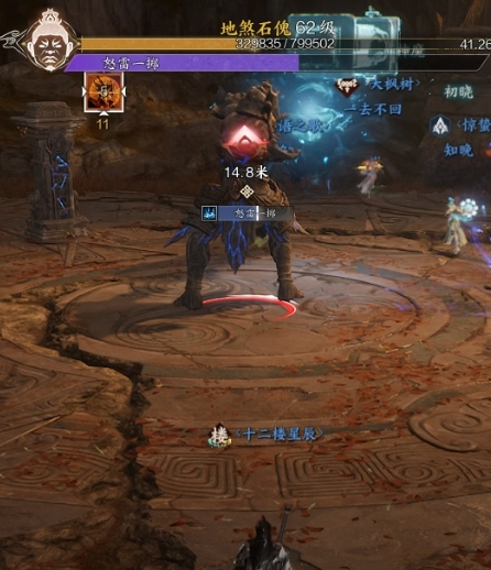 4.BOSS会跳回中场,并且召唤两个石傀幻象,需要在幻象怒雷重踏读条结束前打掉幻象,否则会团灭