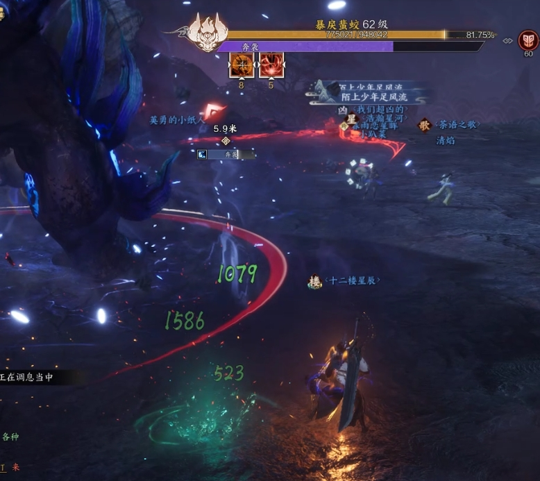 6.2阶段后BOSS所有技能前缀都会多加个戾缚。并且所有点名技能(凶戾缠绕,秽掌等一阶段技能)都会在地上生成紫水,此时吃到BOSS技能就会叠加一层DEBUFF,到5层就会被控制。