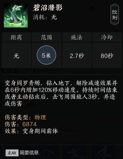 防对面集火可带碧沼潜影法宝,变成蜥蜴钻地霸体并加移速
