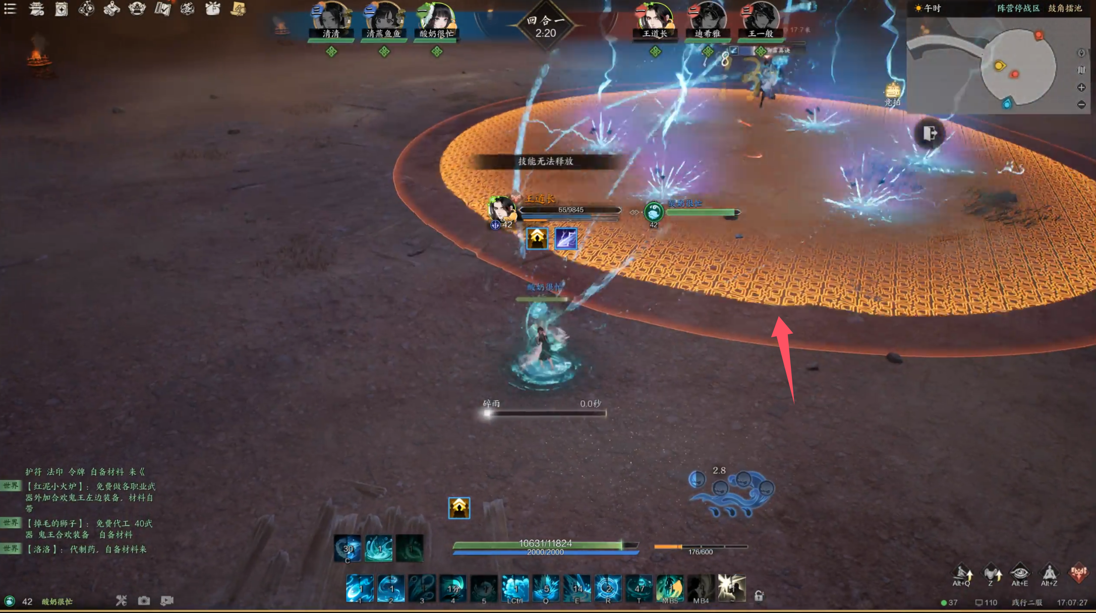 回到之前的准备场地附近进行打坐回血、等待技能CD重回战场