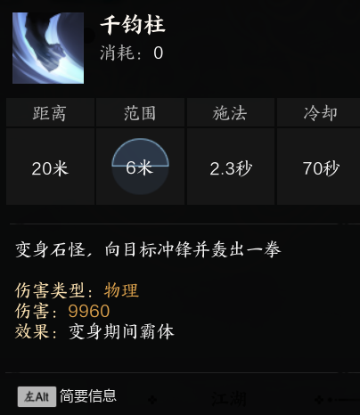 千钧柱,带突进效果变成石头人给对面邦邦一拳