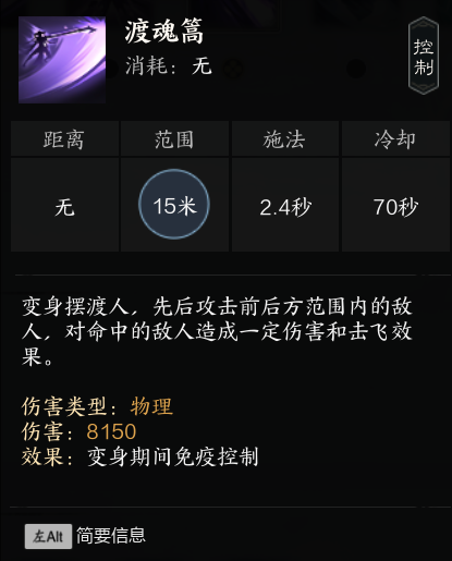 类似于某游戏大眼的大招,但附带霸体而且调整面向速度极快,缺点在于CD久