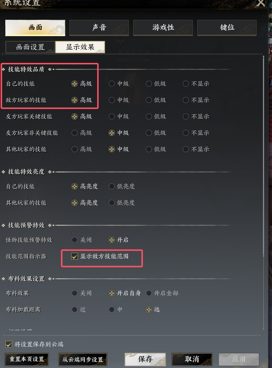 将自己和敌方玩家的特效开高并开启显示敌方技能范围