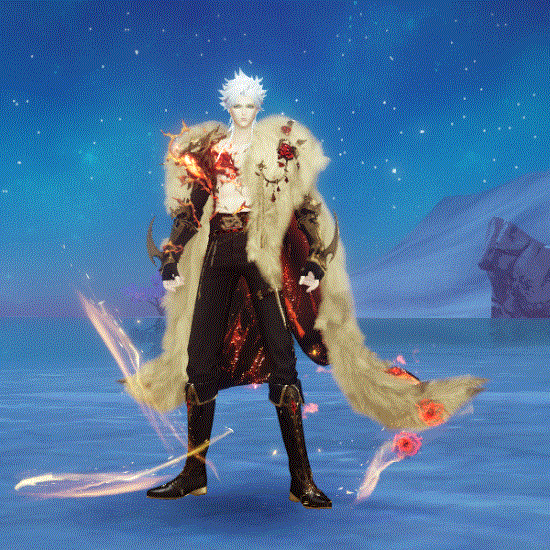 这期男装差点把谕姐帅晕……铠甲与荆棘的完美融合,野性十足的毛领披风,性张力满满!给大家看一张披风背面火焰特效的特写~