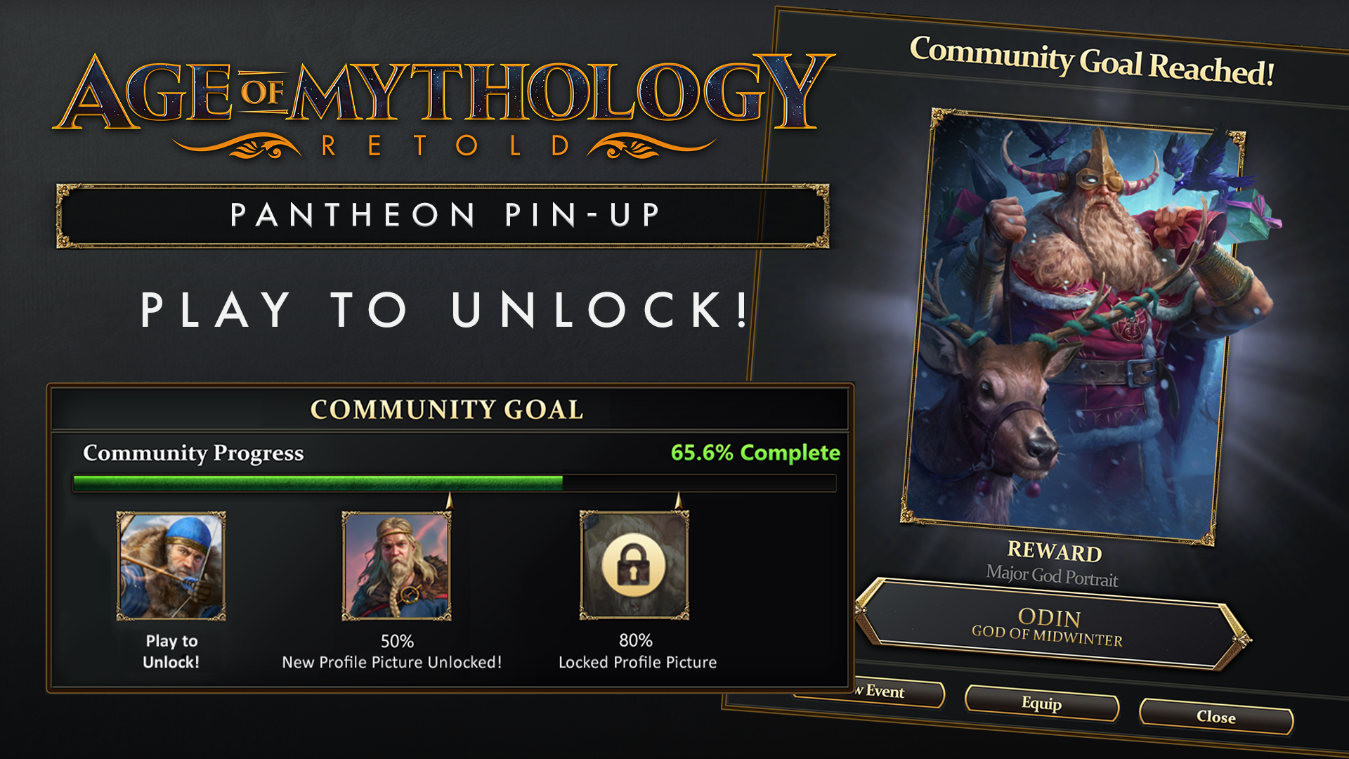 《神话时代:重述版》十一月万神殿集锦活动火热进行中!完成挑战解锁全新神明肖像“奥丁-冬至之神”,截止12月1日。立即加入,冲击100%社区完成度!