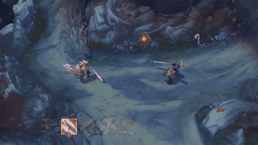 德莱文猛掷出两把巨斧来造成物理伤害,地面划过两道绚丽的金色流光。在命中一名英雄或再次施放之后,巨斧会掉转方向并返回德莱文处。