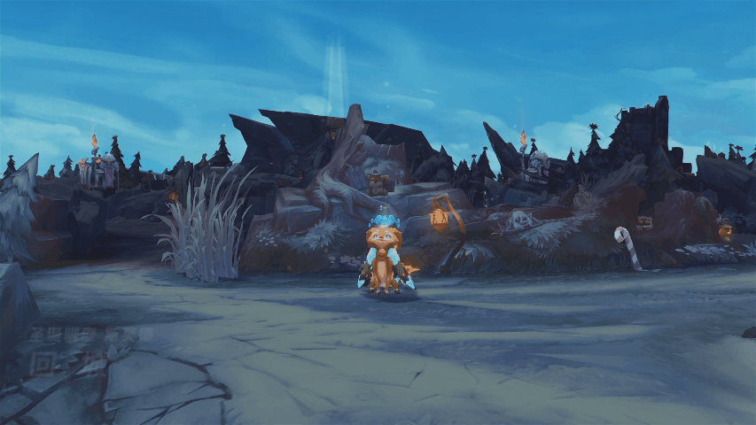 梅尔施展冰雪魔法,一道寒冰阶梯与露台随之凝结而成,她拾级而上并召唤出一枚晶莹的冰晶,随即优雅回城。