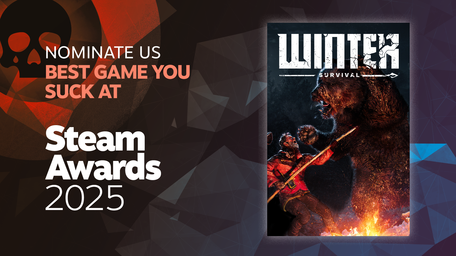 如果你正在享受《冬日幸存者》的乐趣,又或者它常常让你铩羽而归,你都可以在 Steam 大奖的 “玩得很菜但超爱的游戏” 类别中提名我们。这只需花上片刻时间,却对游戏帮助巨大。感谢你!❤️