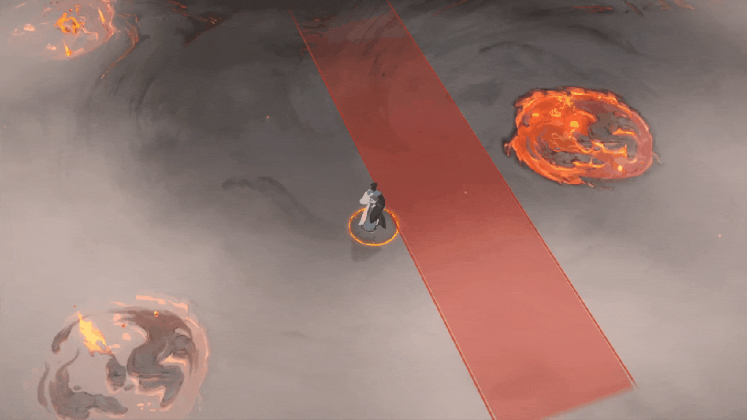 应对方法:一边快速清掉灵体减少干扰,一边紧盯雾中移动的黑影,看到场地中出现长条标识,就立即往垂直方向跑,千万别被撞飞(撞飞后容易吃后续伤害)