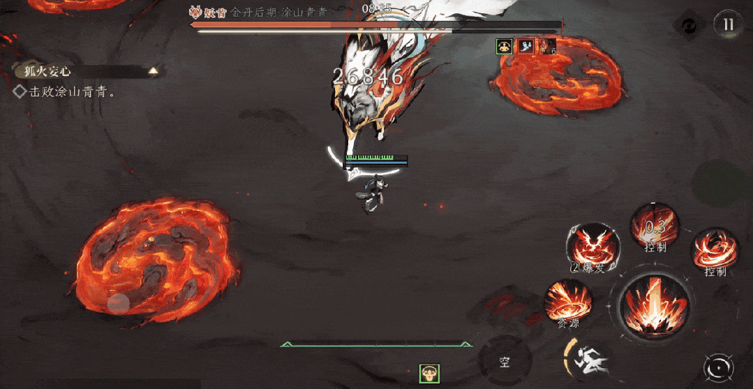 技能机制:涂山青青会跳到场中蓄力,要是没在规定时间内打空 “韧性值”,全场就会爆燃,造成高额伤害!