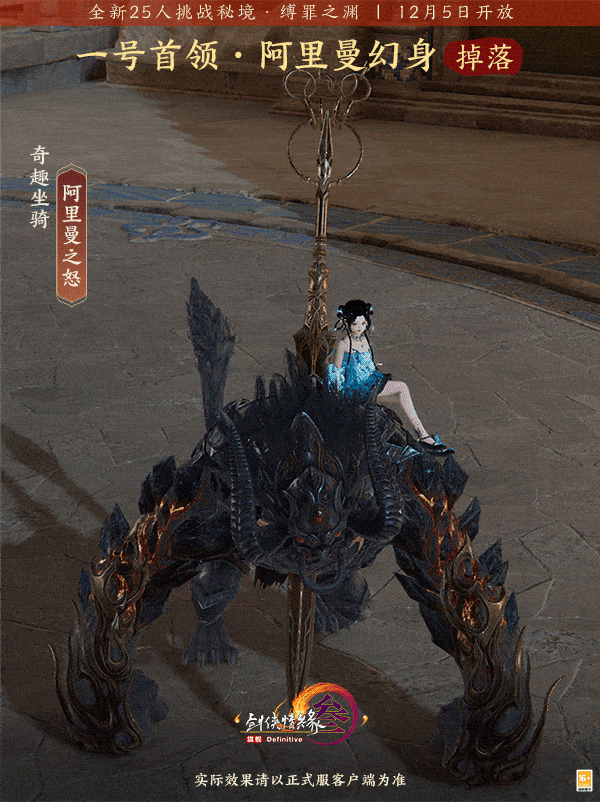 《剑网3》全新秘境“缚罪之渊”上线,挑战阿里曼幻身与阿萨辛首领,掉落奇趣坐骑、特效挂件等奖励。12月5日开放一号首领,12月12日解锁阿萨辛,阵营攻防战同步更新,快来体验!