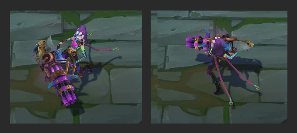 我们将会为金克丝的祖安英雄形态添加她在最终季中的标志性兜帽,实际皮肤原画及模型请以正式服上线为准。