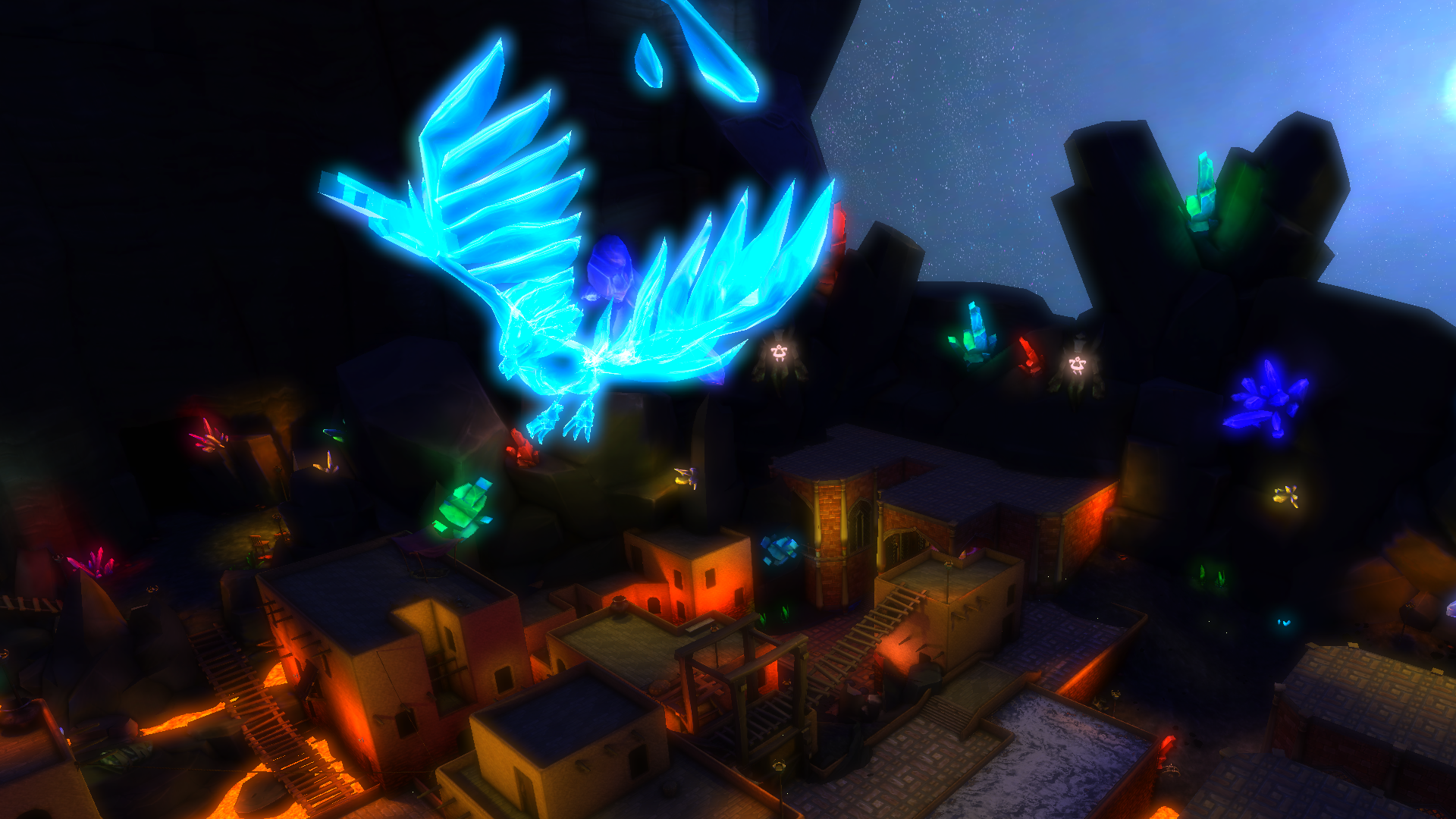 重新构想的莫拉戈沙漠镇,靠近烬焰山火山,包含天界凤凰首领战