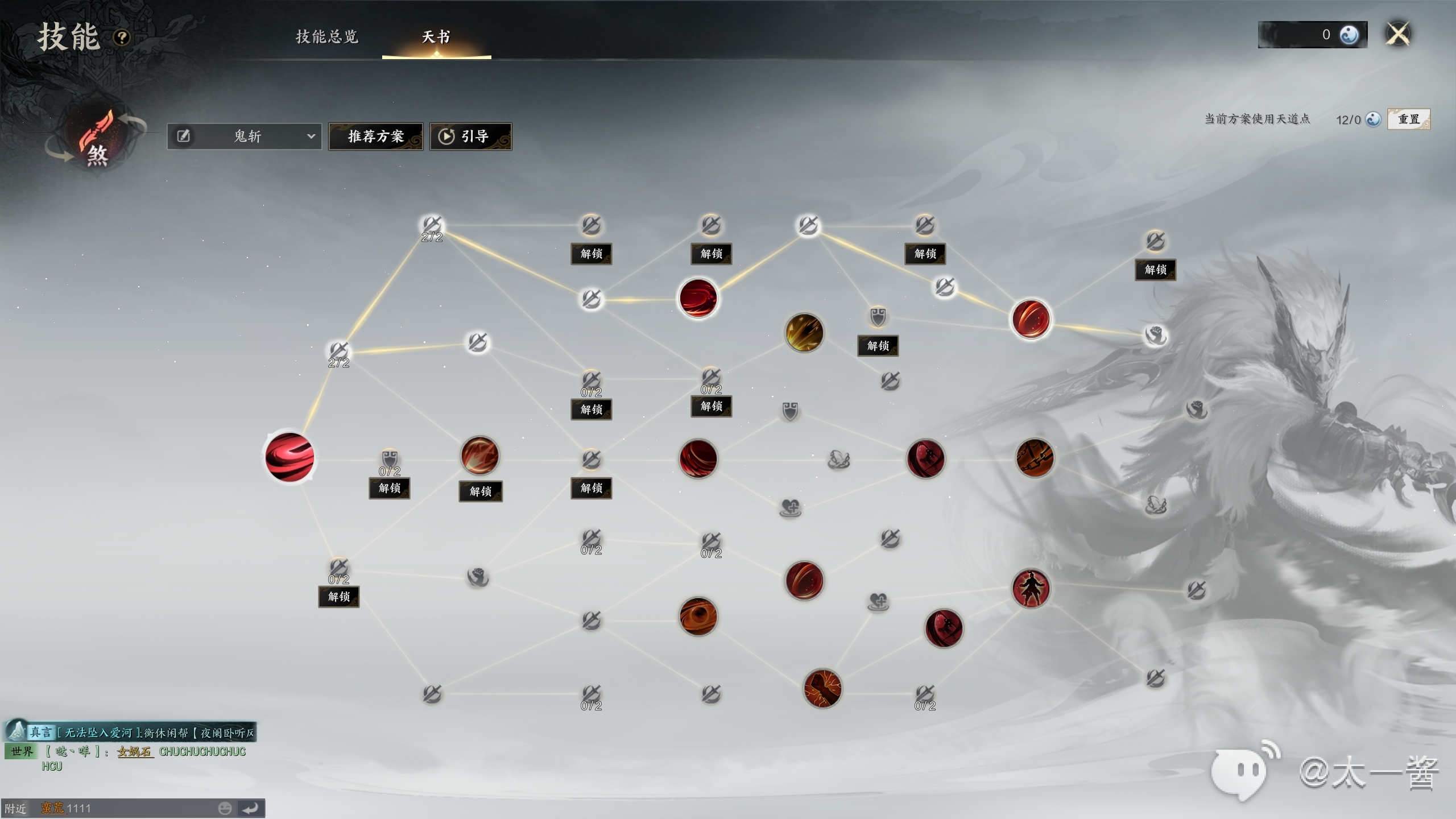 罡鬼王第一天加点思路:鬼斩乱舞流派前期简单适合新手且出伤快,适合萌新宝宝。后期再转下面沸血流