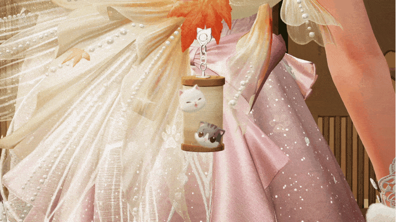 傲娇地双手交叠 转身时裙摆漾开粉色光晕 俏皮举爪,幻光猫爪印记瞬间绽放 定格她的闪耀气场