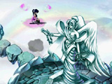 淼淼无垠天宇宽, 涟漪不动碧光寒。 难凭一叶云中渡, 止有三山镜里看。