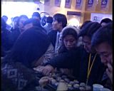活动于上午10:30分准时开始。著名游戏主持人朱红的出场方式别具匠心,由一名现场玩家代表牵着朱红的手走出了育碧磷光的玻璃房子,现场200多人齐声高呼朱红的名字,在最终幻想8的美妙音乐中这位玩家与主持人朱红翩翩起舞,场下顿时沸腾起来。随后,主持人宣布了到场来的众多佳宾及各界媒体。在一段简短的讲话之后朱红带领玩家进行了解绳游戏和大家来找茬真人互动游戏。现场玩家的参与性极其高涨。在半个小时的热身活动之后,大家进入各自喜好的游戏专区进行比赛。本次参加巡展活动的游戏种类十分之多,TV-GAME除了著名的实况足球、铁拳4和极品飞车以外还有深受女孩子们喜爱的泡泡龙。当然,参与性最多还属PC游戏,单以反恐特警为例,就有十几支站队现场报名参赛,他们有临时组建的,还有国内知名的一些站队。不过要说最火的还要数网络游戏了,魔力宝贝、传奇、幻灵游侠、奇迹(MU)、等10余款网游的比赛区聚集了150多人。但是大家还是很有秩序的排队进行参赛。经过几个小时的自由比赛时间,大家赢取了大量的GOGO金币。那些已经按耐不住的玩家们早早的拿着自己的丰收成果排队在换奖台,等待换奖时间的到来。
