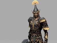 游戏画面3为一武士,从一身金光闪烁的细致盔甲与手中的锋利武器,就可以看出这绝对是心灵之作,充分反映了人物威武雄壮的气势,同时,人物面部表情同样可以清晰观察到。游戏画面4为一游戏女角色,虽然这张图片是2D的,但画面人物服装的精细也是各位包括笔者所惊叹的!