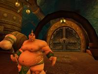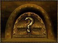 这道门的守卫是一个老年的迪菲亚巫师,看起来他老练狡猾,法力深厚。不过想打开门似乎不那么难,看见指着门的那尊加农炮了没有?要是你能弄***来.....一切就是这么简单。