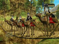 其实跟马匹一样,骆驼也是个单人交通工具,只不过骆驼能够在山区、沙漠地形移动(马匹不行),虽然骆驼移动速度较慢,但是能同时载运较多的道具,玩家也不用担心在遭遇险恶地形时候勤补给欠缺。