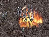 天堂的世界里盛传着众多关于死亡骑士的传说,它是地监的大头目,只有极少数勇敢的骑士在古丁地监7楼偶然见过这个神秘的角色,极快的行动已令那些久经沙场骑士们吃惊不已,而死亡骑士所使用能让地面震动的地震术,以及能随时召唤八个史八托,更是令这个角色的实力变得深不可测。几个曾经与死亡骑士交过手老骑士每次提起死亡骑士时对它强大的力量惊叹不已,即使你有了防满武满装备,死亡骑士的每一刀攻击都会要了你100点左右的血,加之极快的出招速度以及地震魔法时地上出现裂痕魔法攻击,使得死亡骑士变得更具神话色彩。