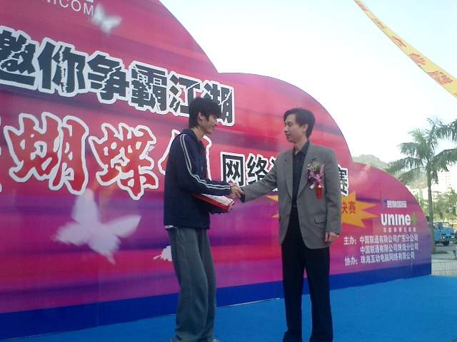 2003年2月9日那天,珠海天空万里无云,珠海互动电脑网络有限公司属下的互动人生网吧门前气球高挂,彩旗飘飘,在中国联通和互动人生网吧各工作人员辛勤布置下,中国联通“流星蝴蝶剑”网络游戏大赛正式拉开战幕,主战场立即硝烟四起,在互动人生网吧的比赛台上,各参赛选手在各自的表演台上尽献风采,战术丰富多彩,让人目不瑕接。