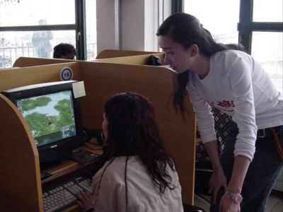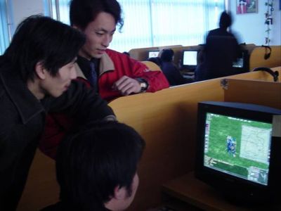 今天是本次活动的第一天,很多玩家都早早守侯在举办活动的四家网吧里等待活动开始。我们看到每一家网吧的每一台机器里都装有〈武魂〉的客户端程序,当我们的武魂天使和GM们进入网吧后,立刻引起了轰动,大批的玩家和工作人员上前咨询游戏事宜,他们的到来吸引了在网吧中的所有人。