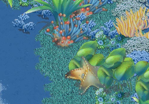 泪之海是由各类的岩石所组成,这里看得到沉没的古大陆所形成的火山,巨大的火成岩是冷却的的岩浆融合了海水的结果。色泽滨纷的珊瑚和珊瑚礁岩。这里感受不到陆上的天候变化,那怕水面上刮风下雨,这里依然四季如春。生命在这里是不受到任何拘束的,只除了最原始的物竞天择。到处悠游的七彩鱼类,各式各样的巨大蚌类,五颜六色的海底植物,忽大忽小的气泡,甚至较少出现的海底漩涡,还有许多叫不出名称的上古生物生活在这个人类足迹从来没有到过的地方。海水虽然清澈却也透露着神秘,单调的波浪声似乎在诉说着千年以前世界的演变。以及在这其中所孕育出来的无数生命体,共同的成长、进化、不断的繁衍下去。