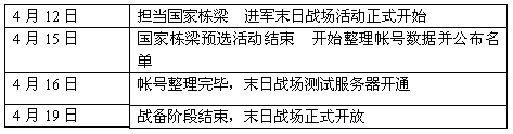 从4月16日起,末日战场服务器将持续开放4天。在此期间,进入测试服务器的玩家可以自由练功及整顿装备,为4月19日举行的第一次末日国战做好准备。