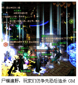 之后,GM陆续出现在科洛斯世界不同的地点,玩家发挥了协同作战的精神,与GM拼杀的更为激烈,死伤的人数也有减少更到后来有两位GM同时出现!!经过的一阵浴血拼杀,两个GM终不敌齐心协力的玩家,竞相倒下。