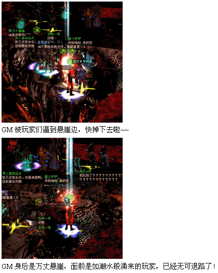 原本强大的GM在一次一次的死亡后,全部装备武器都已经掉落,GM的能力大打折扣,到活动进行到尾声时,小记亲眼看到几个高等级的魔法师已经能够秒杀GM了。最后,两个GM都倒在了凯尔特地狱的悬崖边上!