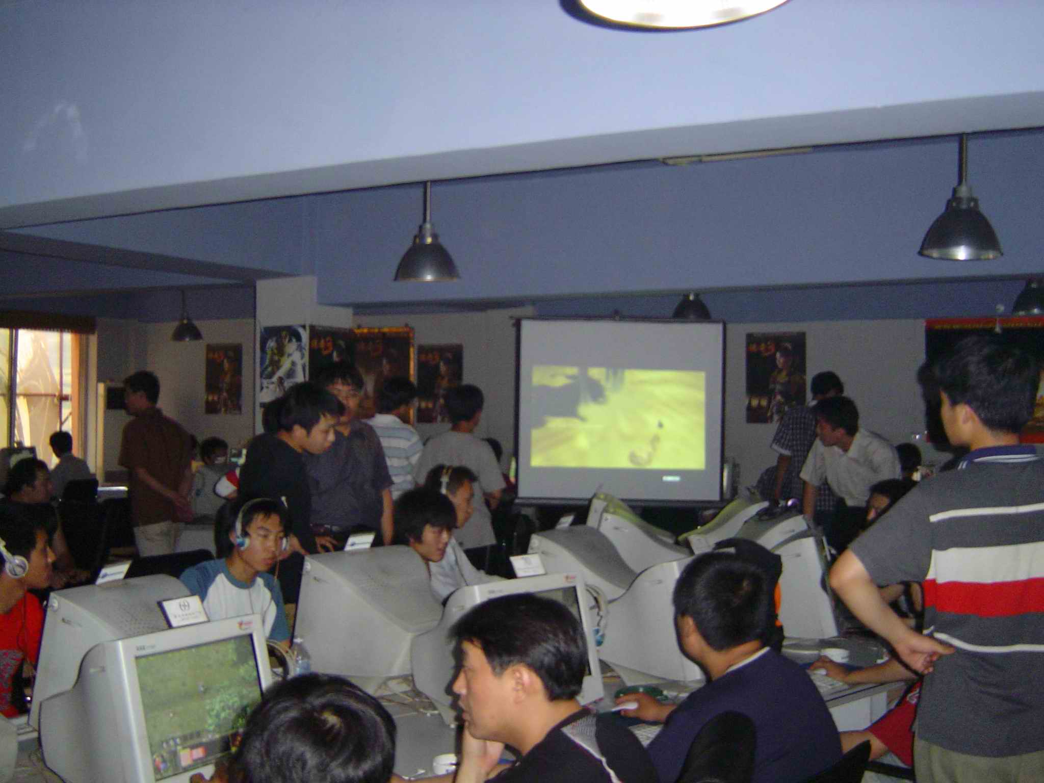 活动时间尚未到,网吧里早就挤满了闻讯而来的大批《传奇3》忠实玩家,大厅里人头攒动,兴奋之状溢于言表。2003年6月21日下午2时正,携带着周末的欢乐,活动正式开始。在强劲的大屏幕投影效果下,游戏中的动感画面跃然在来参加活动选手的每一张热情期盼的脸上。玩家按报名顺序依次进入活动专区,尽情地驰骋在玛法大陆的战场上,选手中有的略显稚嫩,有的轻车熟路,他们三三两两地组对而行,互相交流打战的心得,不时的流露出喜悦,激动的神情。赛区周围挤满了观战者,赛场的气氛感染了每一个人。现场组织人员也没闲着,有的收集调查表,有的辅导新玩家上手,有的倾听玩家建议,有的参与热烈讨论,沟通互动处处可见。