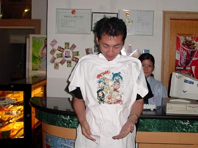 《破天一剑》携手北京“飞宇”网吧和“壹代风月”网吧,在北京地区掀起网络游戏新高潮。从8月1日到8月31日,在这两家网吧上网就有机会获得《破天一剑》赠送的精美礼品,包括精美夏日T恤,《破天一剑》点卡和月卡等等。今天是整个活动开始的第一天,两家网吧场面非常火暴,很多北京地区的玩家得知了这个消息,都在今天赶来两家网吧捧场,还有一些玩家拿起T恤象征性的试着大小,仿佛在表示一定要拿到这份礼品。