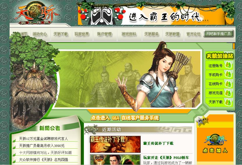 8月9日,传说中的《霸王传说》终于全面覆盖了天骄所有的20组服务器。为了更好的配合《霸王》时代的到来,《天骄》官方网站全面改版。