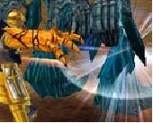 密林外,人类的反抗不堪一击。面对威胁,人们无计可施。猜忌,仇杀,阴谋,争战…混乱笼罩着整个世界。惊慌失措的人们更是惊恐地发现,自己无比信赖的首领昂利斯竟然背叛了人类,成为了怪物们实现侵略计划的一柄利刃!正当昂利斯暗中打开城门,无数怪兽涌入莱蒂尼斯城大门的时候,绝望的人们发现一个金甲武士从天而降,施展着从未见过的华丽招式:他左手中的金盾抵挡住了怪物无数次的进攻,右手的金剑贯穿了千万个怪物的胸膛。 耀眼的光芒过处,怪物溃不成军,仓皇四逃。这个神秘的剑士斩杀了昂利斯,将他的头颅抛下了城墙。当他把手中的剑深深插在城门上的时候,人群中爆发出了震彻大地的欢呼!