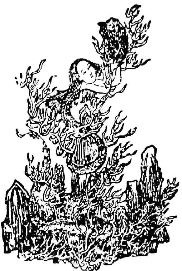 女娲[wa][或云伏羲[xi]妹,上古时人]见天崩地缺,乃去昆仑采炼五彩石以补之。当时有鳌[ao]负山,游戏四海,致地力不坚。女娲断其四足,以立四极,于是地平天成。惟有滔水泛滥,民受其害,女娲聚芦灰止之,由是滔水消涸[he],人物安然。