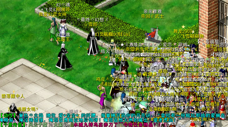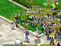 昨夜进行的是梦幻国度服务器组的集体**。夜才刚刚落下它的帷幕,参加今晚集体**的幻灵爱侣们就已经迫不及待地蜂拥向绿野仙踪,这样激动人心的活动,当然谁都希望可以早一刻进场抢一个好位置啦。当时针渐渐逼近19:40,绿野仙踪的水城教堂外就已经聚满了等待集体**的幻灵爱侣们。19:40,浪漫“黑店MM”NPC终于打开金口,允许爱侣们入场了。一时间,“黑店MM”就被这些爱侣们围得密不透风,以至迟来的玩家甚至都已经看不到“黑店MM”的倩影了。